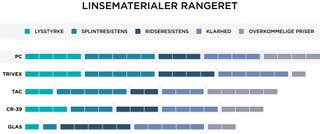 TAC-linser er utrolig lette, hvilket gør dem behagelige at bruge hele dagen. De er også kendt for deres fremragende polariserende egenskaber, hvilket betyder, at de er gode til at reducere genskin fra reflekterende overflader som vand eller sne. Selvom de giver god optisk klarhed og er mere stødsikre end glas, er de ikke lige så ridseresistente. Så lidt ekstra pleje er nødvendigt.