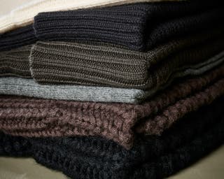 - Tykt strik – Det er sådan nogle, du måske har set din bedstemor strikke. Det vi kalder tykt strik fremkommer af en kombination af tykt garn og den måde, de er blevet strikket på.