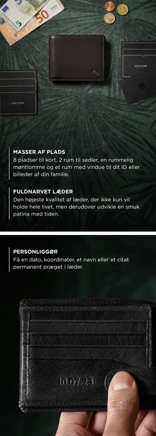- Rummer op til 20 kort, kontanter og kvitteringer
