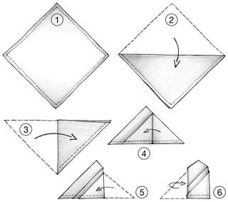 Denne elegante foldemetode er perfekt til bryllupper og andre formelle anledninger. Det ser flot ud, uanset hvilken typer stof du folder den i. Denne foldning ser især godt ud, hvis du laver den med en klud med kontrasterende kanter.