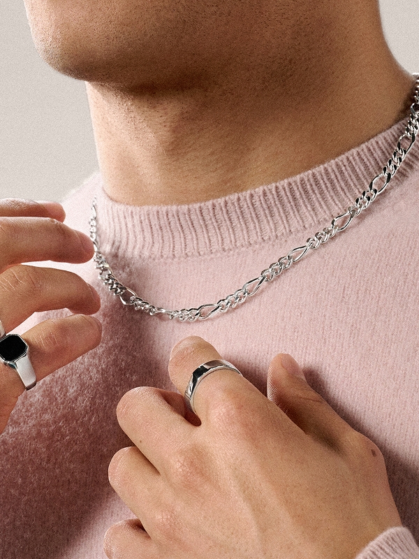 Argentia | 925s | 4 mm Rhodiumbelagt Sterlingsølv Figaro Kæde Halskæde