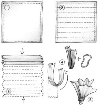 - Fold lommekluden, så den har form som et langt rektangel, ved hjælp af harmonikateknikken.